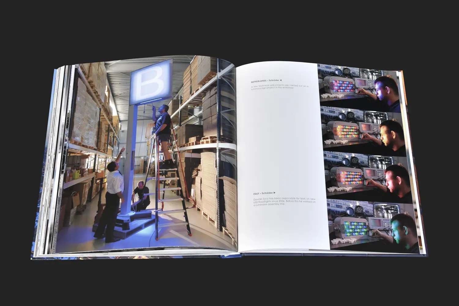 is a book presenting the Schreder industrial group which employs over 2500 people in 35 countries and who are within reach of their partners, their clients and local suppliers at each moment of every day.